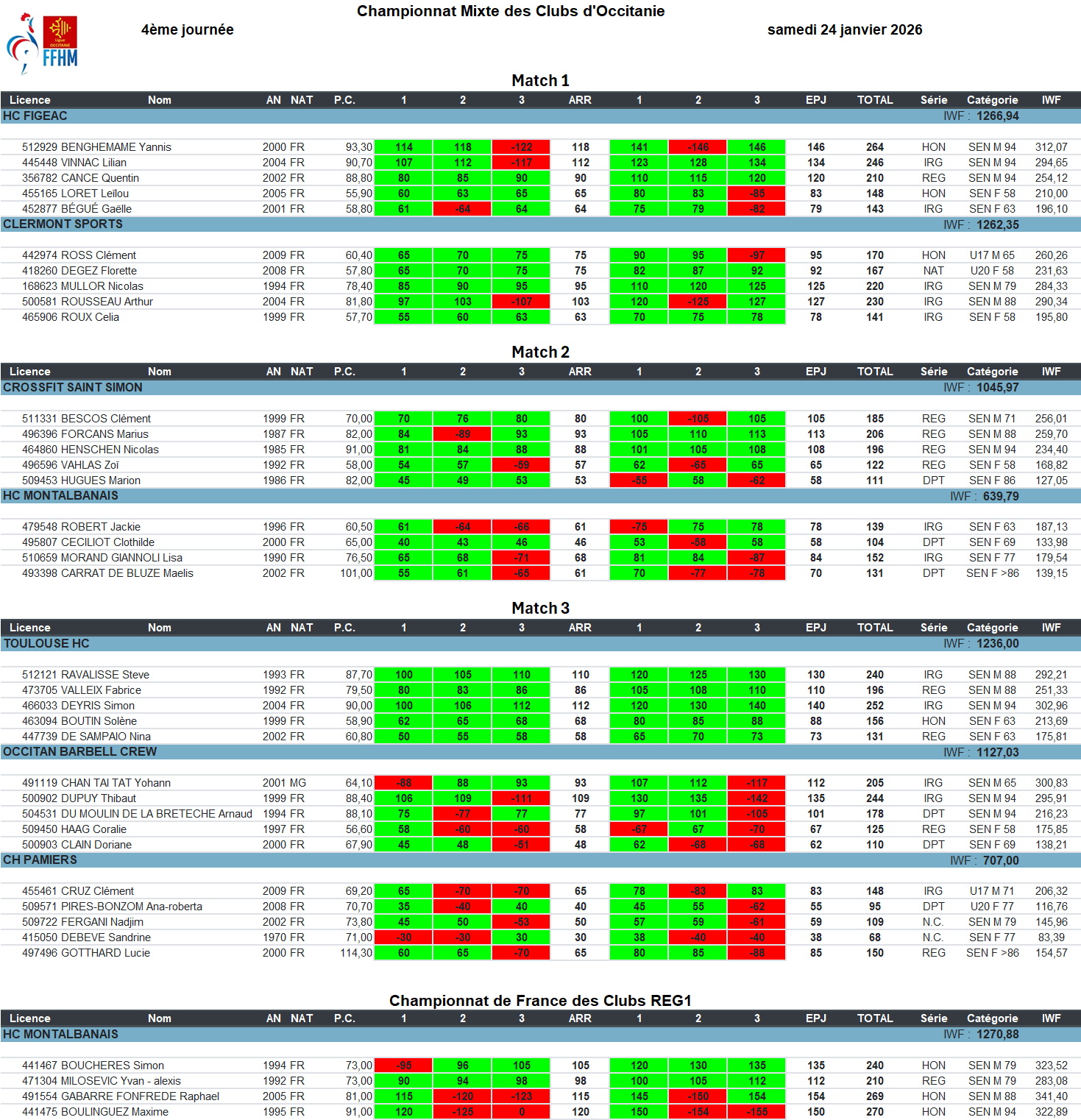 La 4ème journée aura permis 3 matchs entre 7 clubs et un classement définitif sans rencontre lors de la 3ème journée pour cause d’intempéries importantes le 20 décembre 2025.