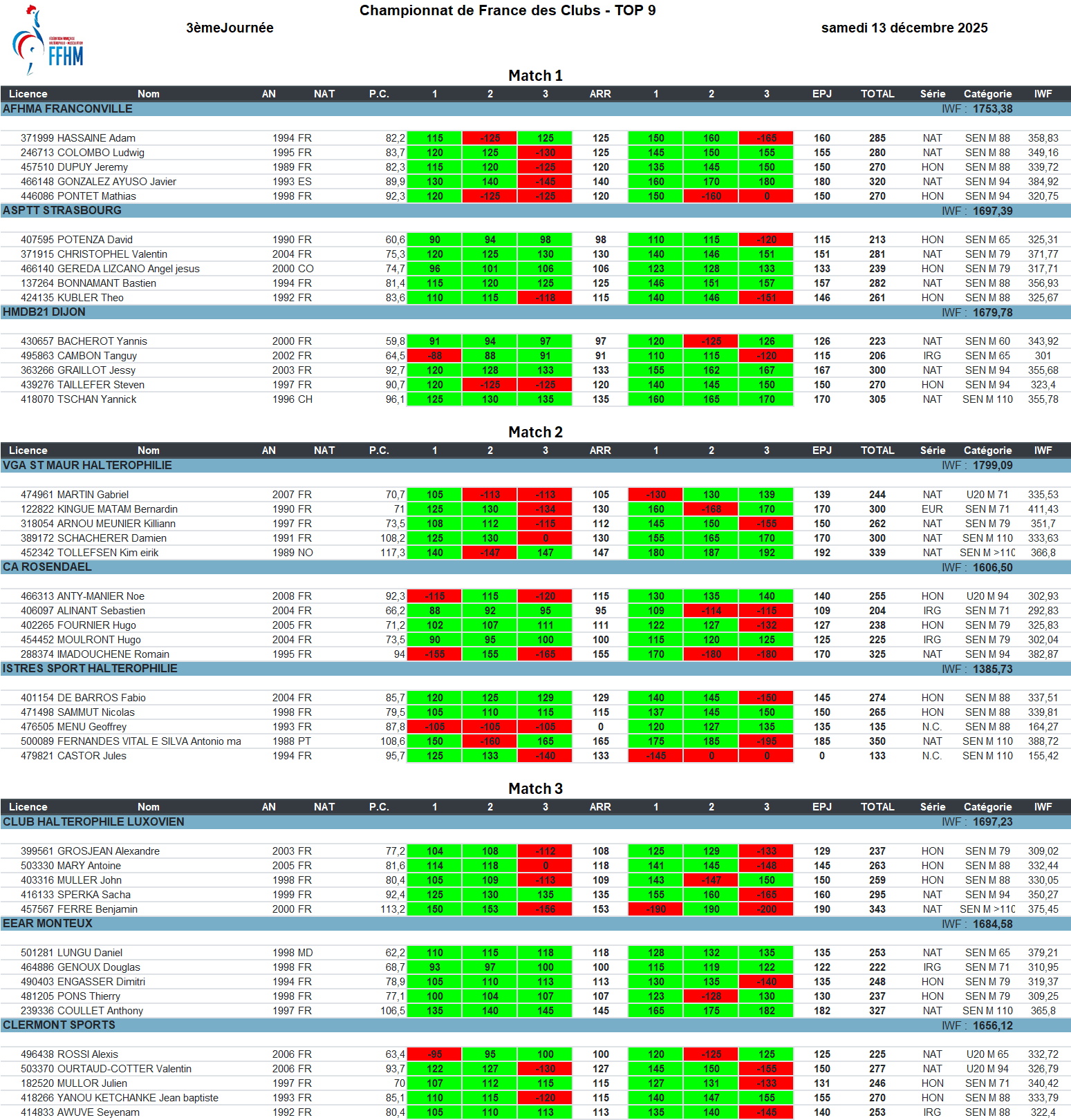 Enfin Seyenam AWUVE SENM88 réalise aussi son meilleur total de la saison ARR113kg+EJ140kg=TO253kg série IRG.